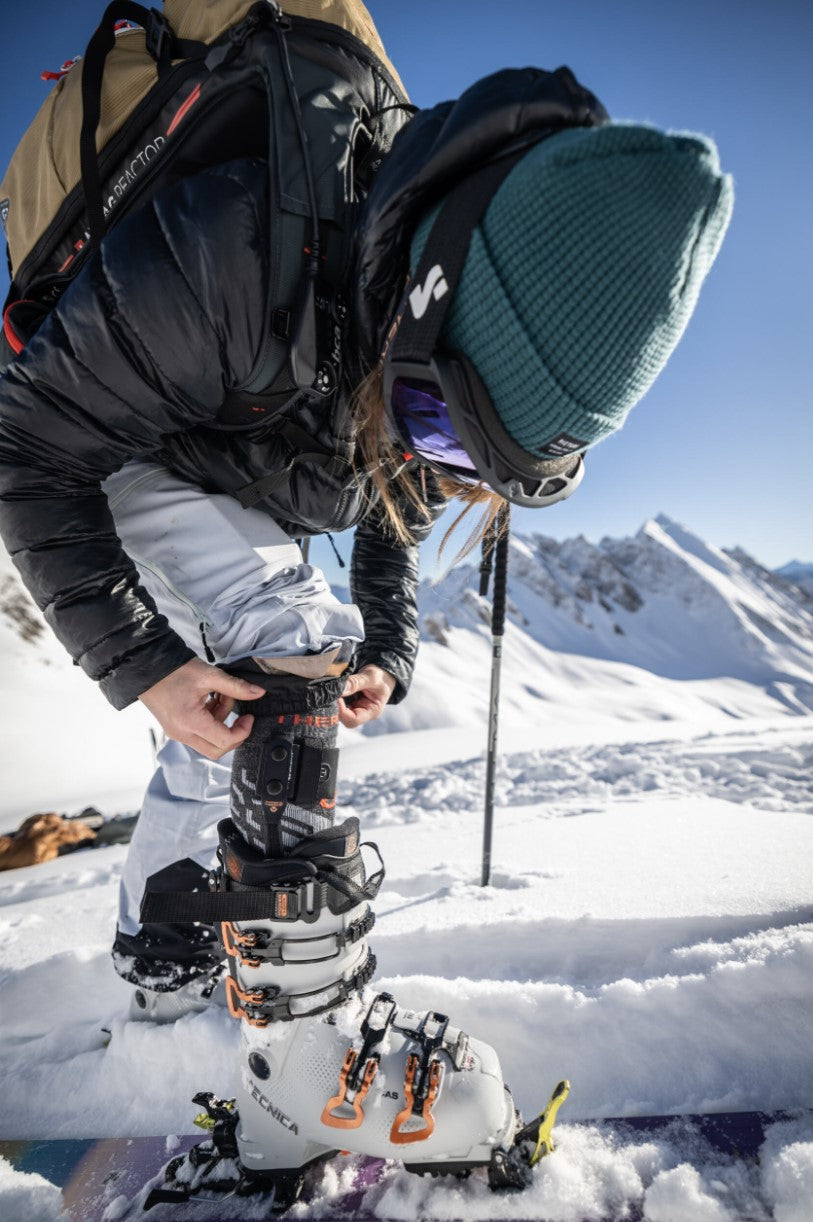 The Ultra Warm Performance S.E.T® socks are thin and highly technical, engineered for a low-profile fit inside performance ski boots. Smart.Elastic.Technology® wraps the foot and calf for a precise, adaptive hold without bulk or pressure points, ensuring optimal boot response. A discreet 2 mm S.E.T® heating line delivers subtle, even warmth to the toes without affecting fit or flex.